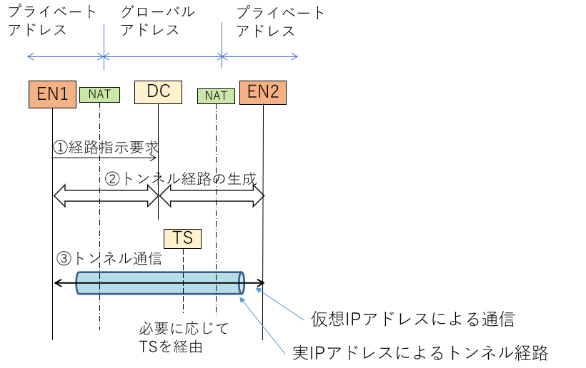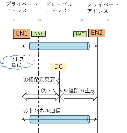 EN1とEN2はDCの指示に従って、実IPアドレスによるトンネル経路を生成します。